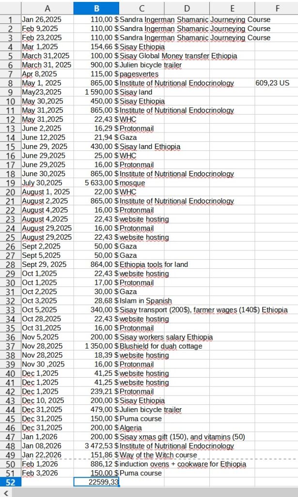 As we are now officially in the Year of the Fire Horse and are currently fasting for Ramadan (Fast with Us!, even for a day 🙂 ), we can see what a great year really 2025 was! In the year of the wood snake, we made a total of 22599,33$ in various donations (up from 2024), as one can see in the following table: